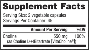 Choline (VitaCholine®): Also known as choline bitartrate, VitaCholine® is a patented dietary ingredient that provides the body with the essential nutrient choline, which is vital for brain function and overall health.
