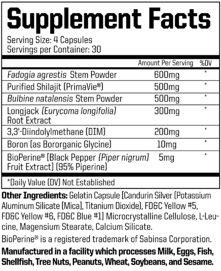 - 600mg of Fadogia agrestis to support a healthy libido, athletic performance, and muscle building.*