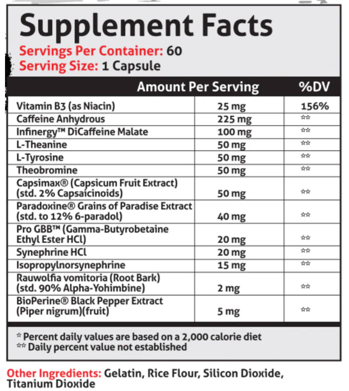 The magical little pill! Though it may be little, it IS mighty! This is only for the most aggressive of weight loss goals. Body fat doesn't stand a chance once this formula reaches saturation point. Expect the sweat to pour once it's down the hatch. Your appetite will be crushed and energy will be through the roof! There aren't many formulas that make you feel the burn like this one!