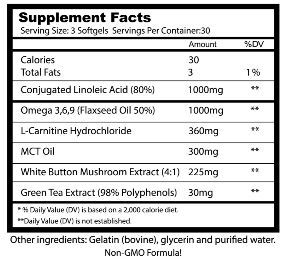 Conjugated Linoleic Acid: Naturally occurring fatty acid that helps shuttle fat consumed in your daily diet into energy. This process is called “lipolysis”. CLA has also been studied for its ability to encourage lean muscle toning.